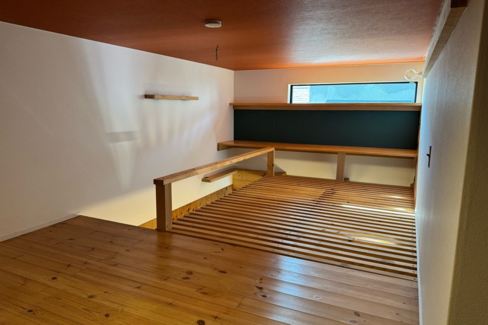 ロフト部分。面積が広く、床の一部にスリットがあるので下からの明かりが漏れて明るいですね。