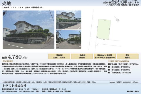 横浜市金沢区西柴四丁目・土地 4,780万円